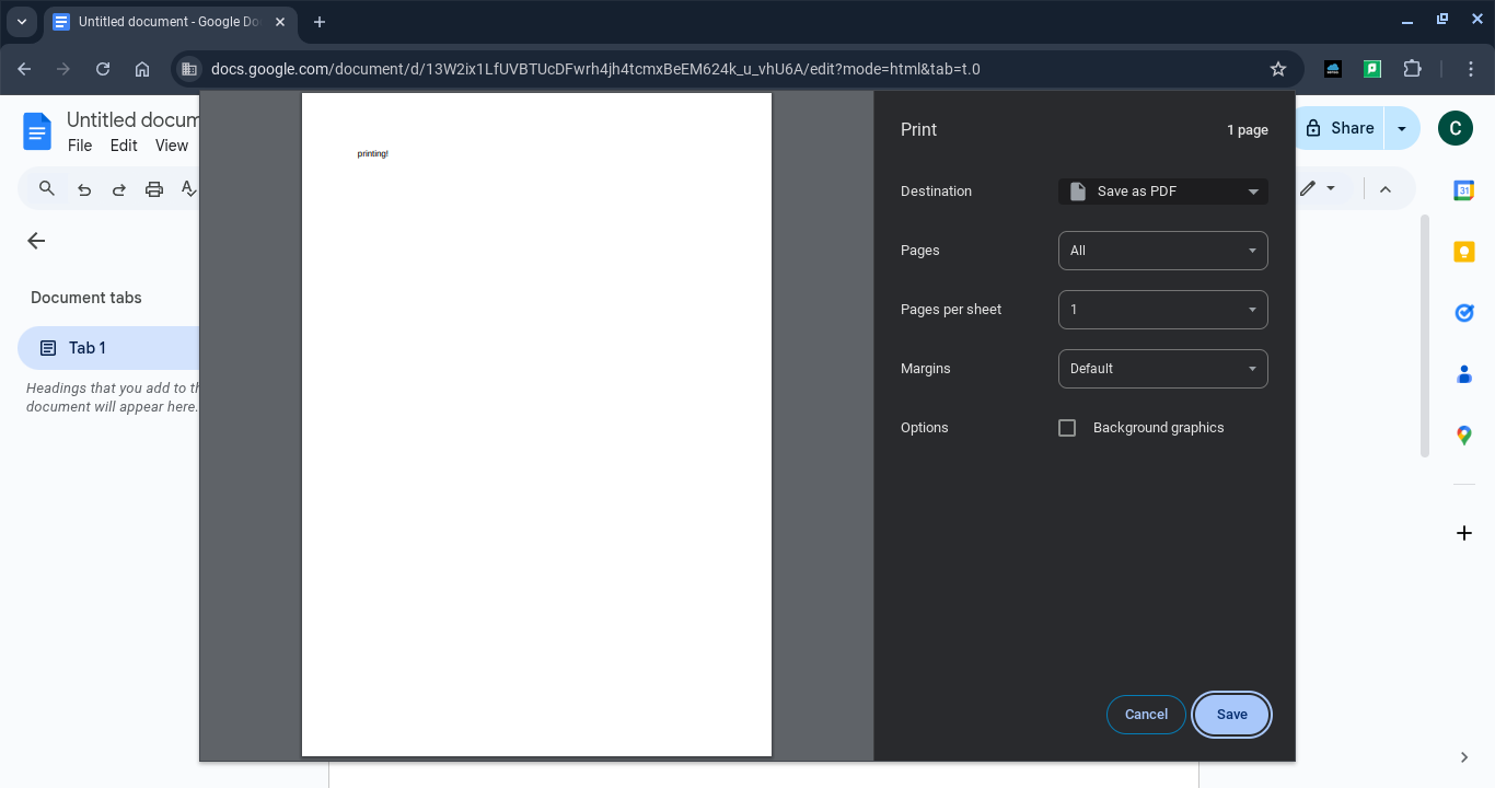 Open the print menu in whatever app/website you’re using. This will be different for every app/page, so if you’re unsure, Google it. Most places also allow you to open the menu by pressing Ctrl + P.